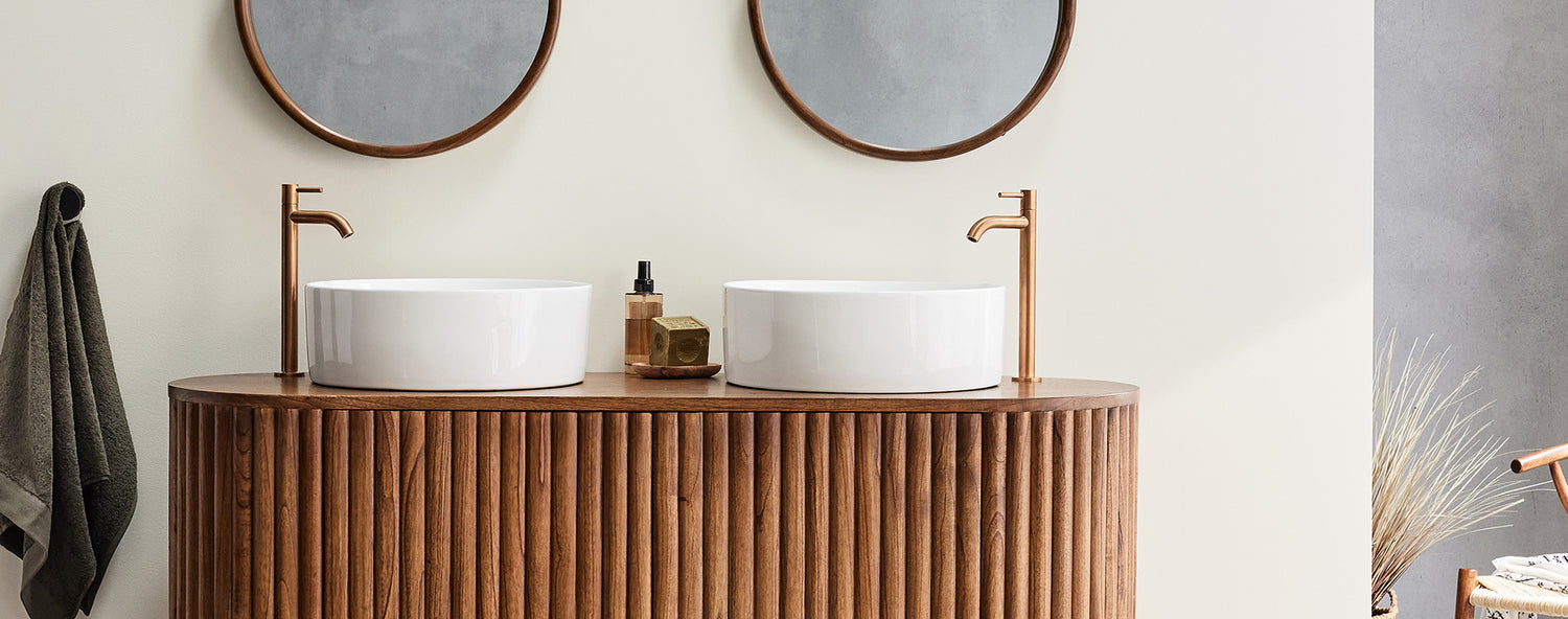 Les dessins validés, deux meubles vasque (l’un double, l’autre solo) et un généreux miroir, il a fallu choisir le bois. Un bois chaud naturellement. Authentique et massif dont les nervures nous rappellent que là, sous les vasques, la vie a fait son œuvre et que la nature a toute sa place à la maison.