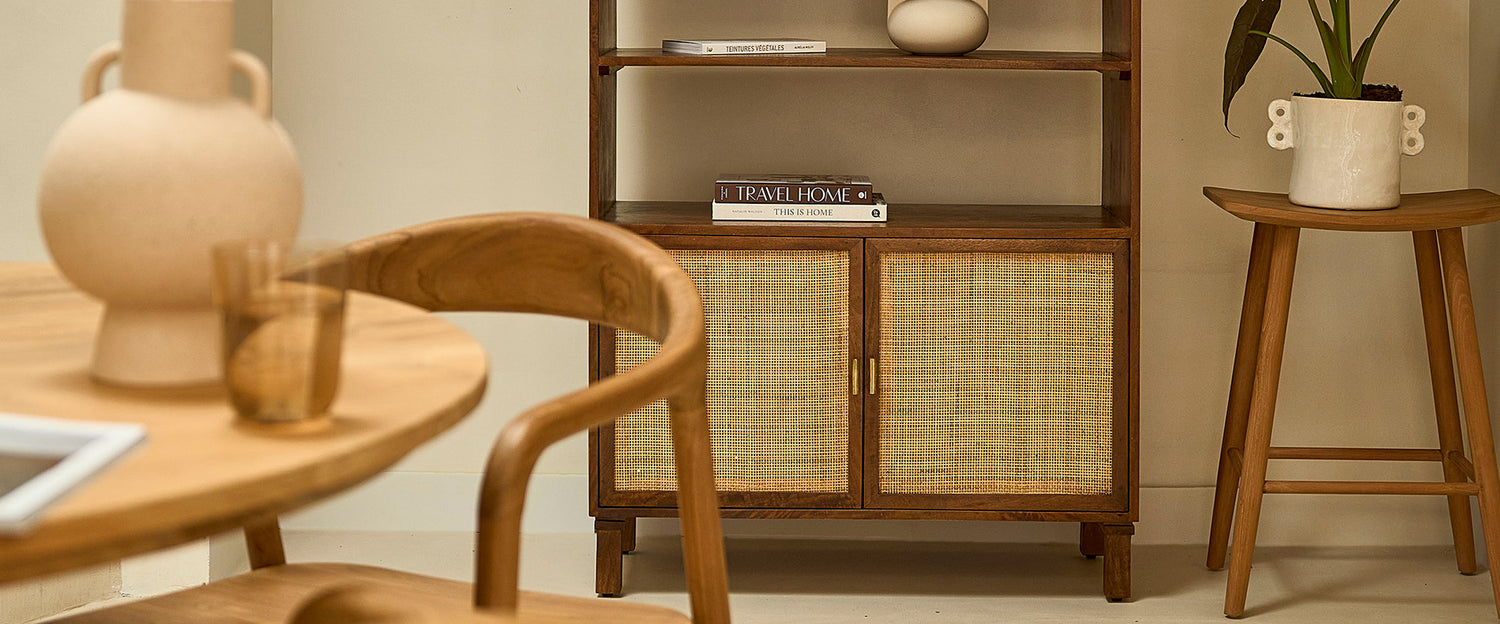 Chaque meuble de la collection RAPHAEL, du meuble TV au buffet en passant par l'armoire, incarne la quintessence du charme intemporel. Explorez avec nous les subtilités de la collection RAPHAEL, où la chaleur du bois, la lumière du cannage et la noblesse de la finition noyer se conjuguent pour une expérience d'intérieur exceptionnelle dans votre séjour.