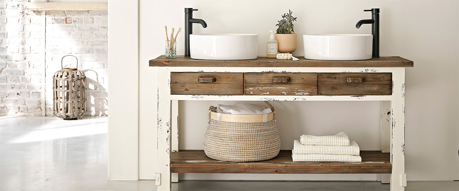 Conçue avec du bois de pin récupéré sur des trains, des bateaux, des maisons et à qui l’on souhaiter donner une deuxième vie, la collection SEZANNE et la collection ATLANTIC, manie l’art de la transformation. Garder l’aspect patiné par la vie pour donner au futur meuble l’air d’un baroudeur aguerri qui aurait toujours vécu ici, solennité de la maison, ce qui lui confère un charme fou qu’on a eu envie par contraste, d’associer aux courbes sobres de nos élégantes vasques de salle de bain.