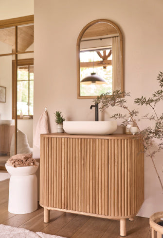 Vervollständigen Sie Ihren Raum mit unseren Holzspiegeln in verschiedenen Formen und Größen, die perfekt zu Ihrem Badezimmermobiliar passen. Ob rund, rechteckig oder oval, wir haben das Modell, das Ihren Bedürfnissen und Ihrem Stil entspricht.
