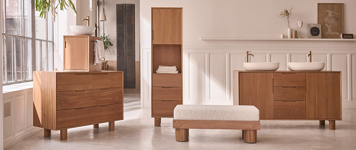 Les essences sont sourcées avec soin où leur renouvellement est garanti. Nos ateliers veillent à une production éthique. Et toujours, nous privilégions les essences spéciales telles que le pin et le teck recyclés issus de bateaux ou de trains, qui en plus de modérer l'usage de matières premières, donnent à nos meubles cette authenticité si merveilleuse.